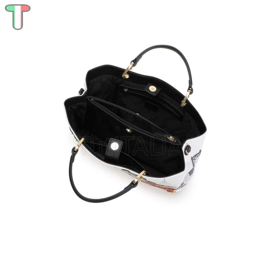 Kollektion 2025 FW.  Hersteller: Braccialini.  Linie: Cartoline.  Funktionalität: Handtasche.  Material: Polisynt.  Farbe: multi.  Schulterriemen einstellbar.  Gewicht: 37x27x15 cm.  Höhe des Griffs: 12 cm.  Maße: 0.98 kg.