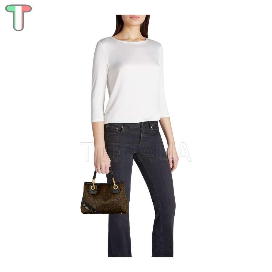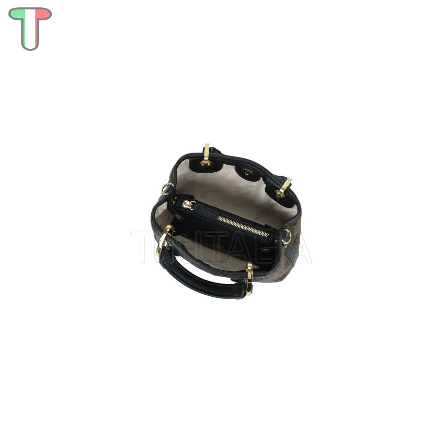 Kollektion 2025 FW.  Hersteller: Braccialini.  Linie: Beth.  Funktionalität: Minitasche.  Material: Polisynt.  Farbe: schwarz.  braun.  multi.  Schulterriemen einstellbar.  Gewicht: 18x15x7 cm.  Höhe des Griffs: 10 cm.  Maße: 0.58 kg.