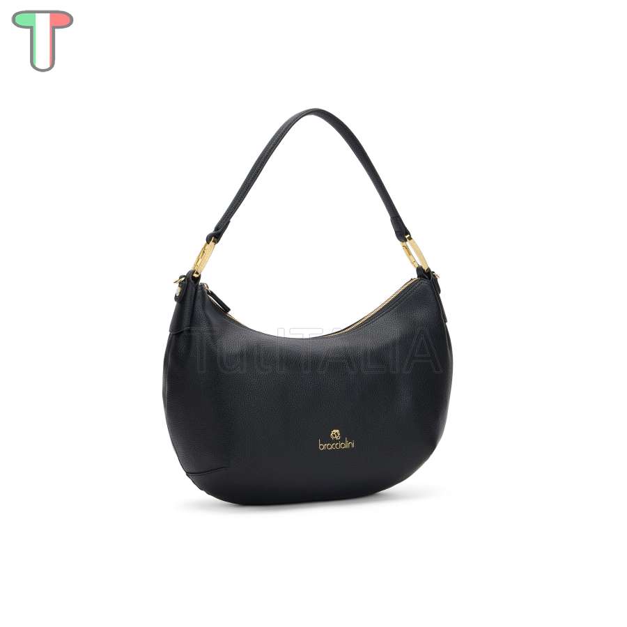 Kollektion 2024 FW.  Hersteller: Braccialini.  Linie: Beth.  Funktionalität: Handtasche.  Material: Polisynt.  Farbe: schwarz.  Handgriff: Single mit abnehmbarem und verstellbarem Schultergurt.  Innenraum der Tasche: zwei interne Taschen, eine mit Reißverschluss und eine offene Tasche.  Verschluss: Reißverschluss.  Gewicht: 39x28x15 cm.  Höhe des Griffs: 35 cm.  Maße: 0.85 kg.