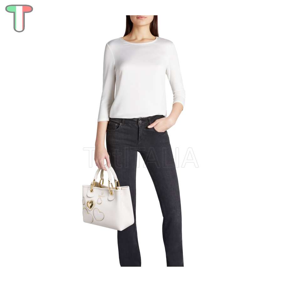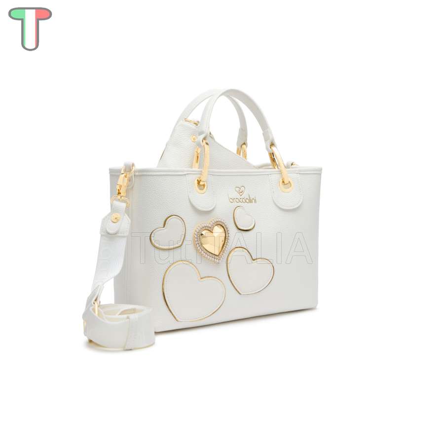 Kollektion 2025 FW.  Hersteller: Braccialini.  Linie: Beth.  Funktionalität: Handtasche.  Material: Polisynt.  Farbe: Weiß.  Handgriff: doppelt mit abnehmbarem und verstellbarem Schultergurt.  Gewicht: 28x21x13 cm.  Höhe des Griffs: 11 cm.  Maße: 0.6 kg.