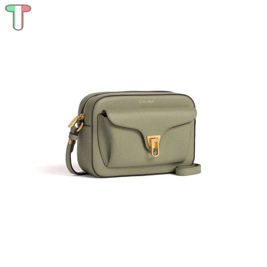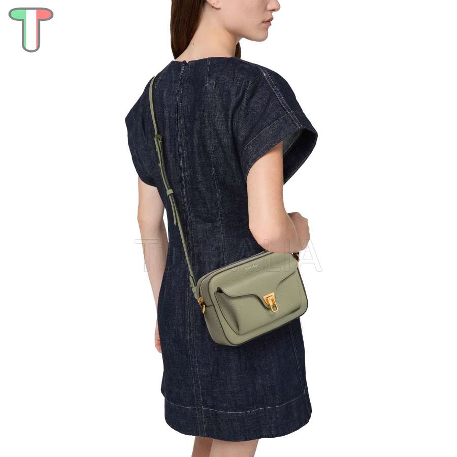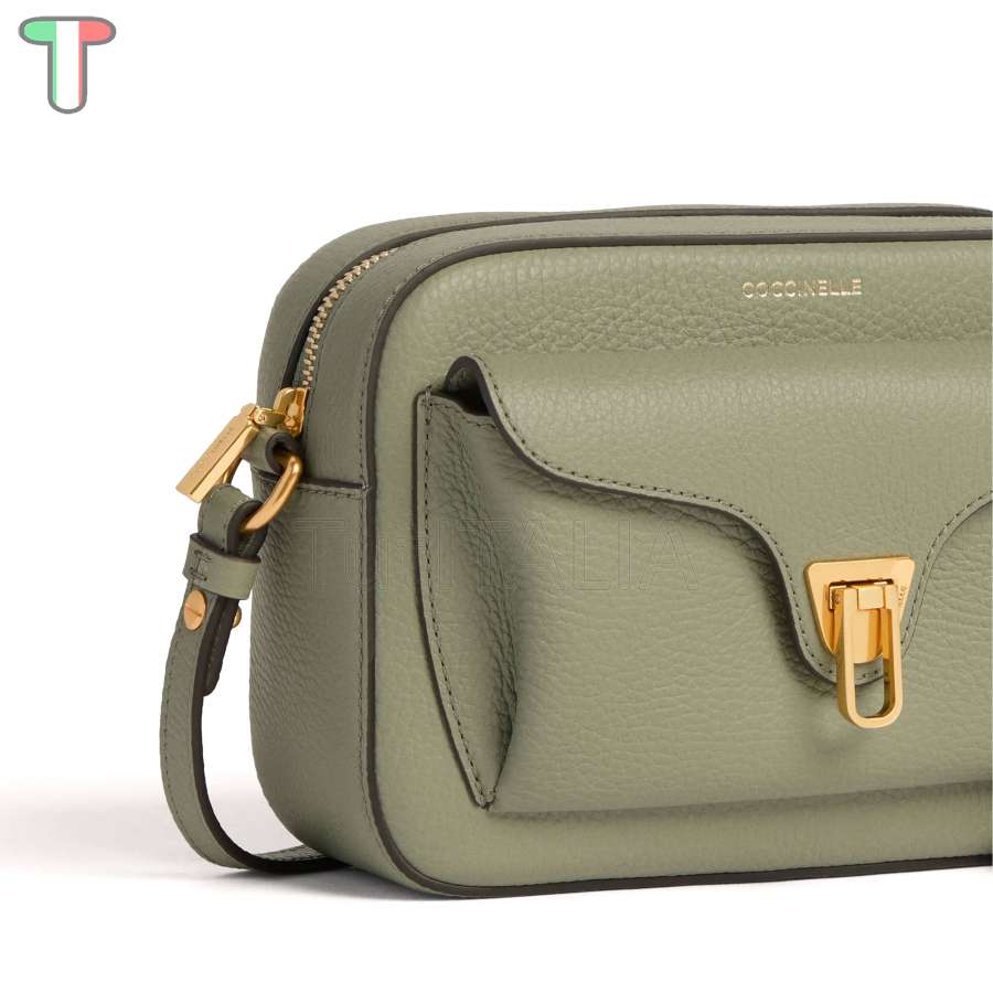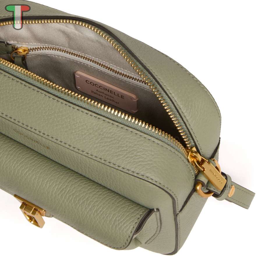 Kollektion 2025 FW.  Hersteller: Coccinelle.  Funktionalität: Schultertasche.  Material: Echtleder.  Farbe: Grün.  Garantie 2 Jahre.  Schulterriemen einstellbar.  Gewicht: 21x15x7 cm.  Maße: 0.4 kg.