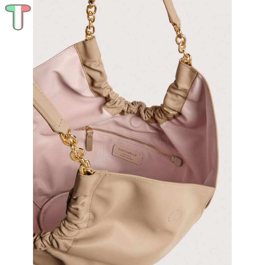 Kollektion 2026 SS.  Hersteller: Coccinelle.  Funktionalität: Handtasche.  Material: Echtleder.  Farbe: Beige.  Garantie 2 Jahre.  Gewicht: 21x27x12 cm.  Maße: 1.05 kg.