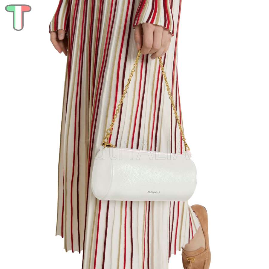Kollektion 2025 SS.  Hersteller: Coccinelle.  Funktionalität: Minitasche.  Material: Echtleder.  Farbe: Weiß.  Garantie 2 Jahre.  Gewicht: 22x11x9 cm.  Maße: 0.18 kg.